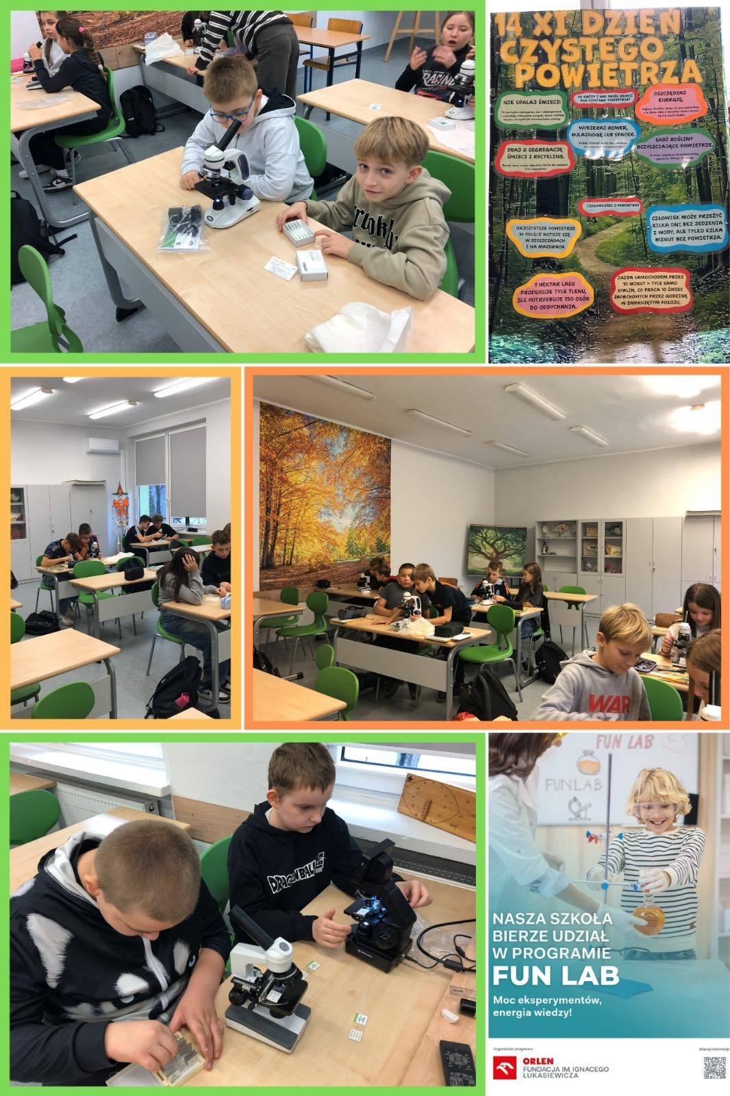 Uczniowie kółka przyrodniczo-ekologicznego mieli możliwość samodzielnego rozpakowywania i przygotowania do pracy mikroskopów, które szkoła otrzymała w ramach realizacji projektu FUN LAB. Dzięki temu mogli zapoznać się ze sprzętem, jego budową oraz zasadami bezpiecznego użytkowania. Dało im to dużo radości.