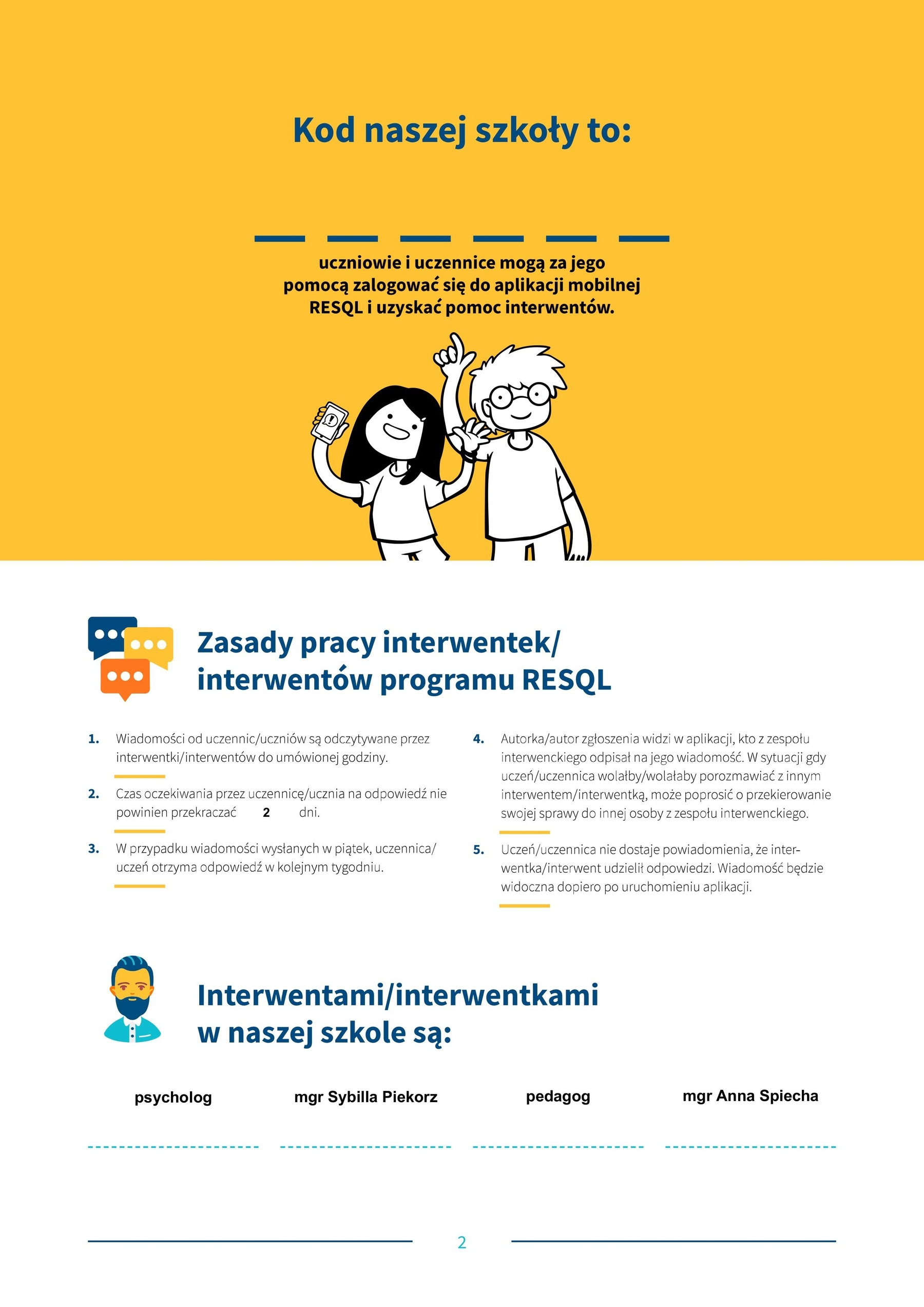 KOD SZKOŁY JEST DOSTEPNY W SEKRETARIACIE SZKOŁY